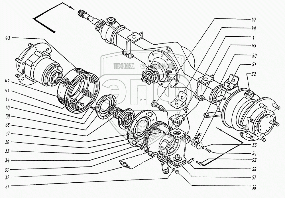 Каталог запасных частей к технике: ТВЭКС ЕК-14. Мост передний (приводной управляемый)