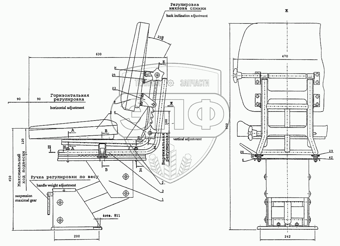 Каталог запасных частей к технике: ТВЭКС ЕК-14. Сиденье машиниста