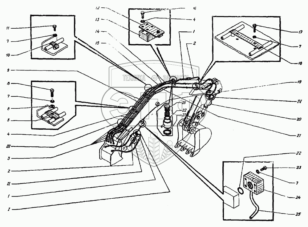 Каталог запасных частей к технике: ТВЭКС ЭО-3122. Трубопроводы рабочего оборудования обратная лопата