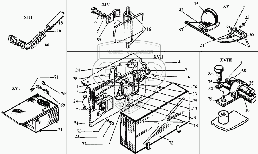 Каталог запасных частей к технике: ТВЭКС ЭО-3323. Электрооборудование (части XIII..XVIII)