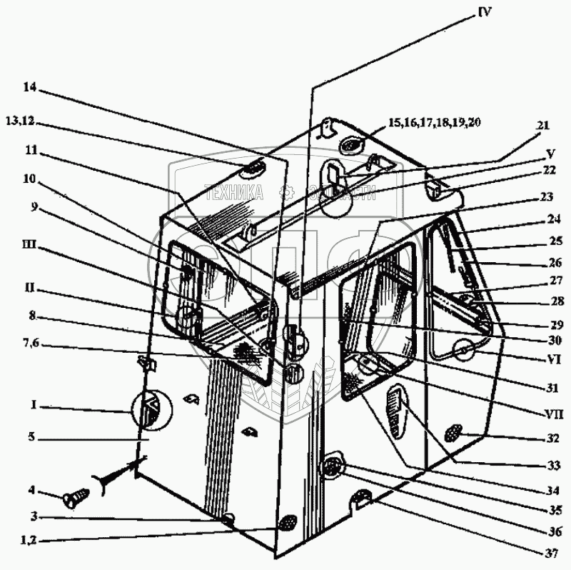 Каталог запасных частей к технике: ТВЭКС ЭО-3323. Кабина (части I..VII)