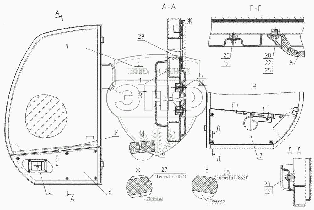 Каталог запасных частей к технике: ТВЭКС ЭОВ-3521. Дверь