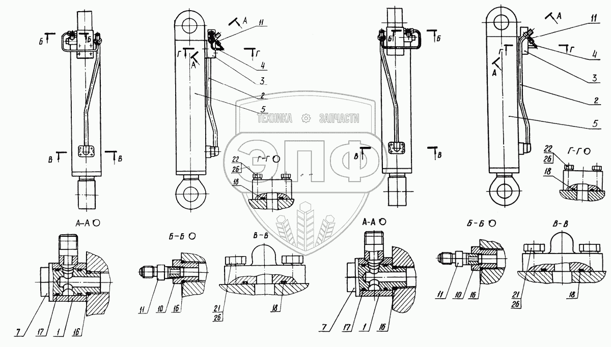 Каталог запасных частей к технике: ТВЭКС ЭОВ-3521. Гидроцилиндр левый, правый