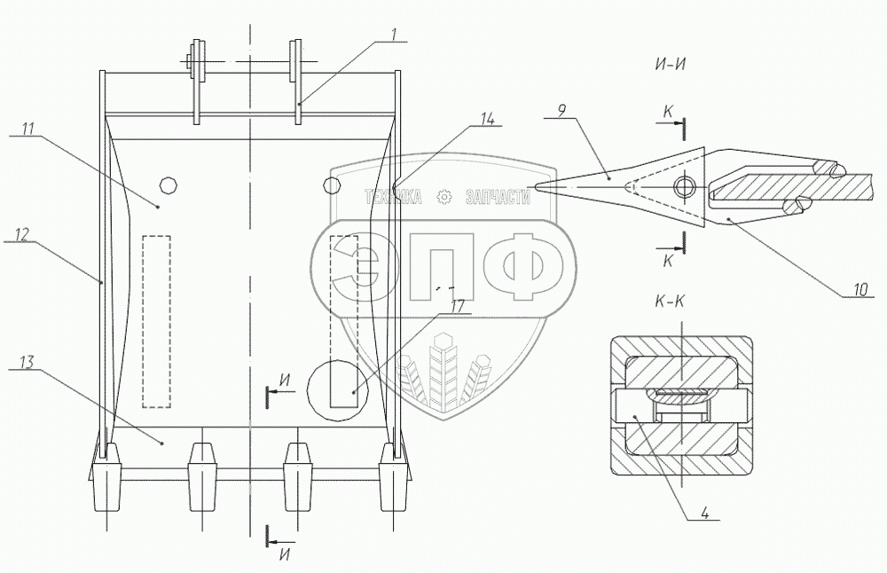 Каталог запасных частей к технике: ТВЭКС ЭОВ-3521. Ковш обратной лопаты
