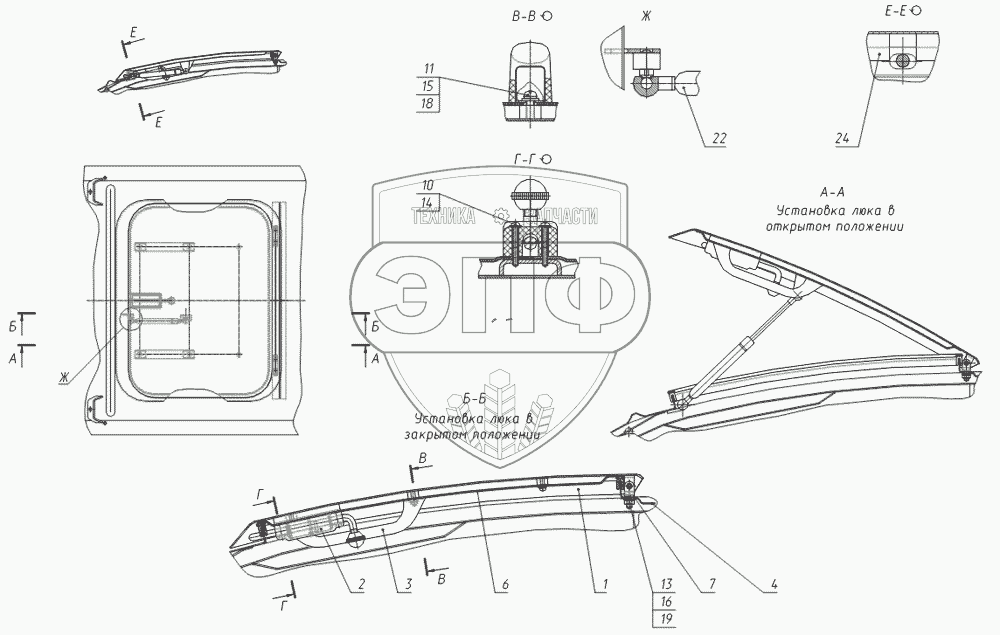 Каталог запасных частей к технике: ТВЭКС ЭОВ-3521. Установка люка
