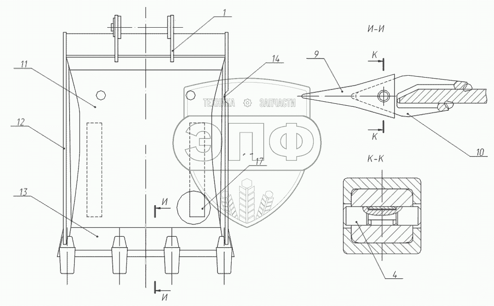 Каталог запасных частей к технике: ТВЭКС ЭОВ-3521М-1. Ковш обратной лопаты