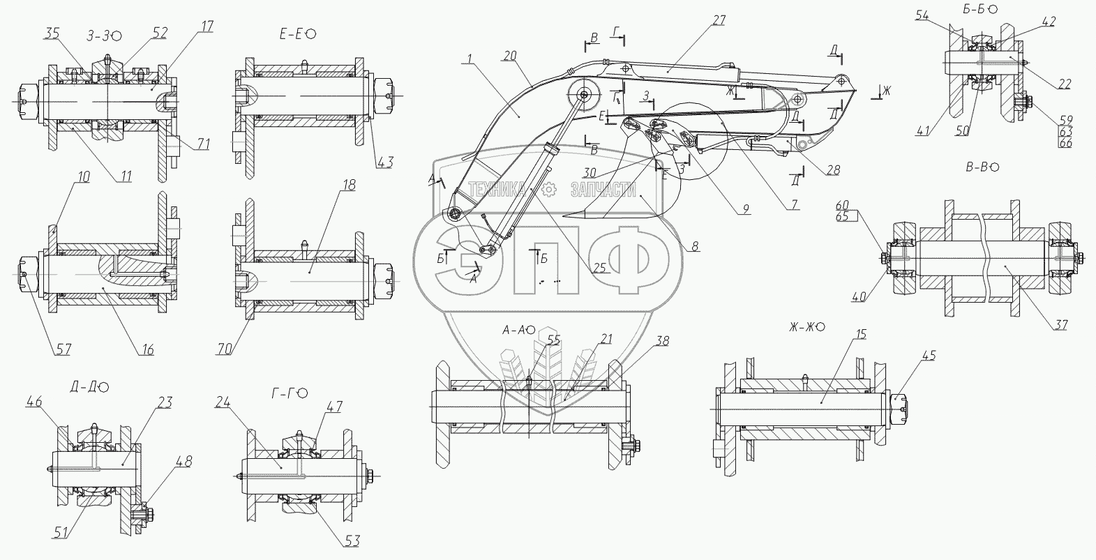 Каталог запасных частей к технике: ТВЭКС ЭОВ-3521М-1. Рабочее оборудование обратной лопаты