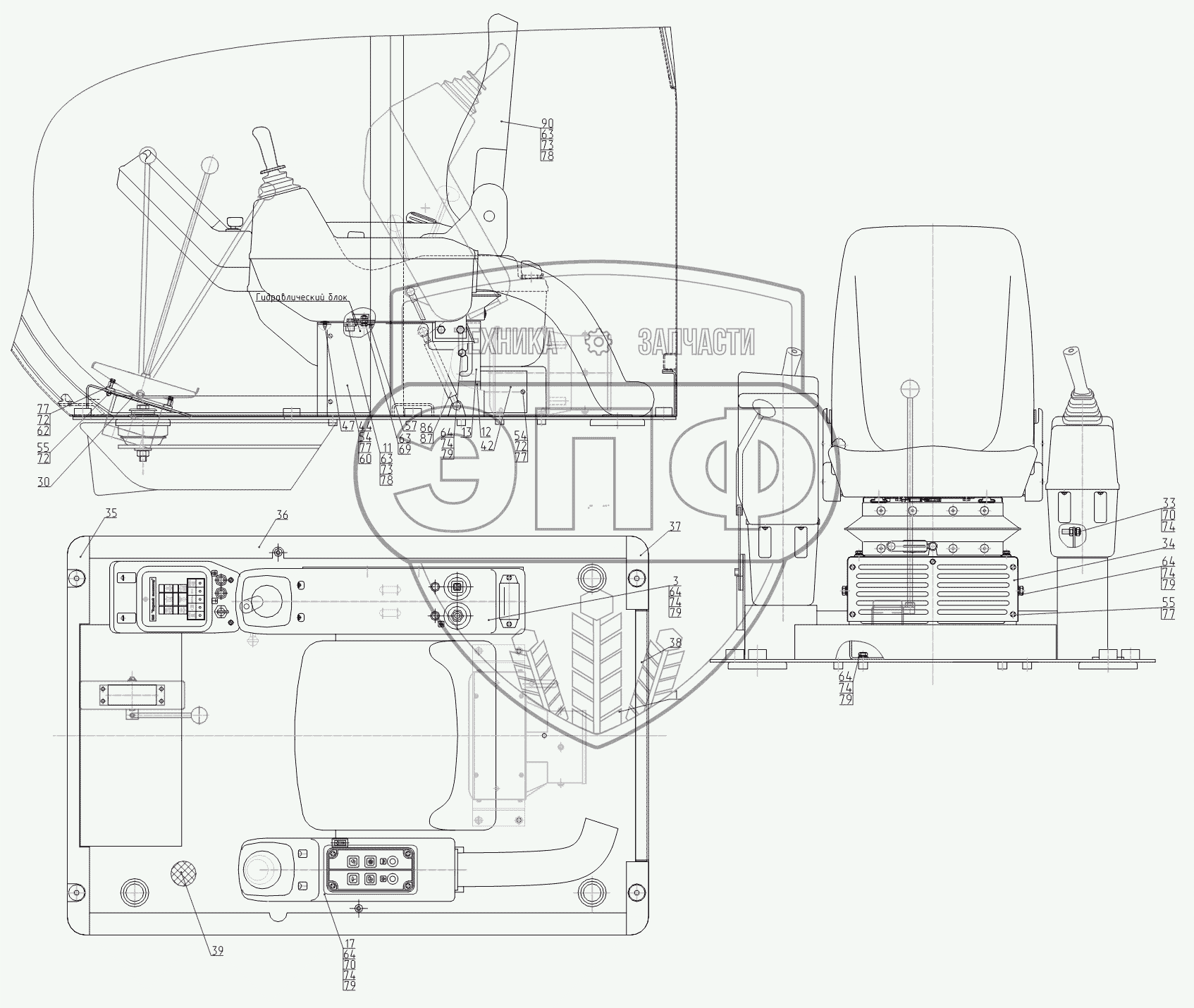 Каталог запасных частей к технике: ТВЭКС ЭОВ-3521М-1. Управление экскаватором