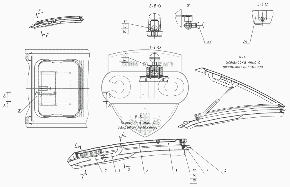 Каталог запасных частей к технике: ТВЭКС ЭОВ-3521М-1. Установка люка