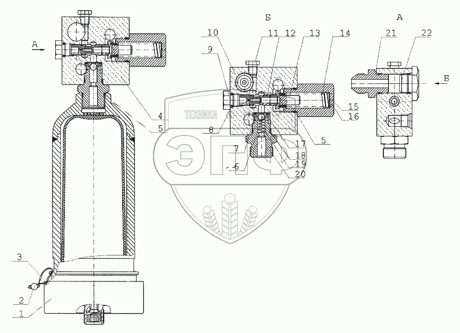Каталог запасных частей к технике: ТВЭКС ЕТ-18-20. Пневмогидраккумулятор с гидроклапанами