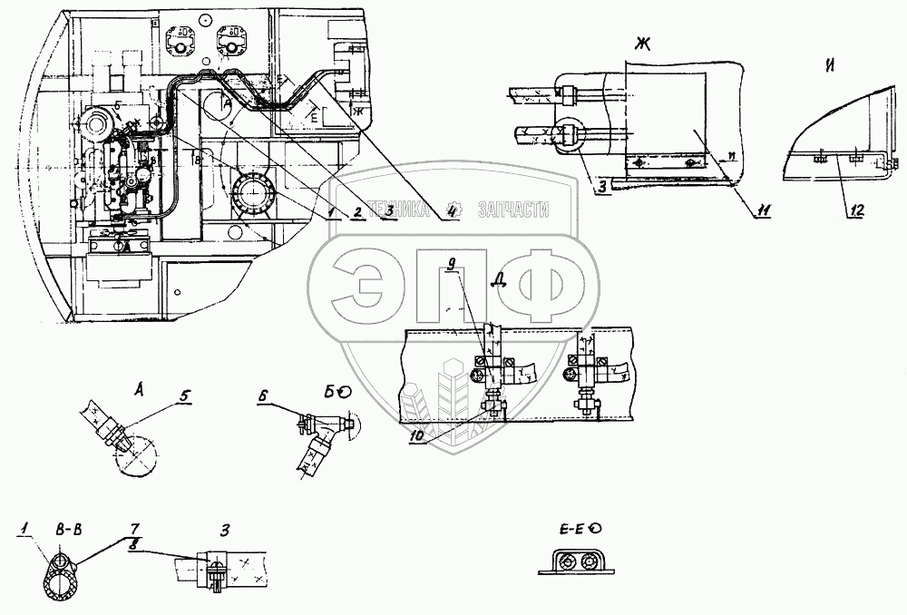 Каталог запасных частей к технике: ТВЭКС ЕТ-18-20. Установка отопителя