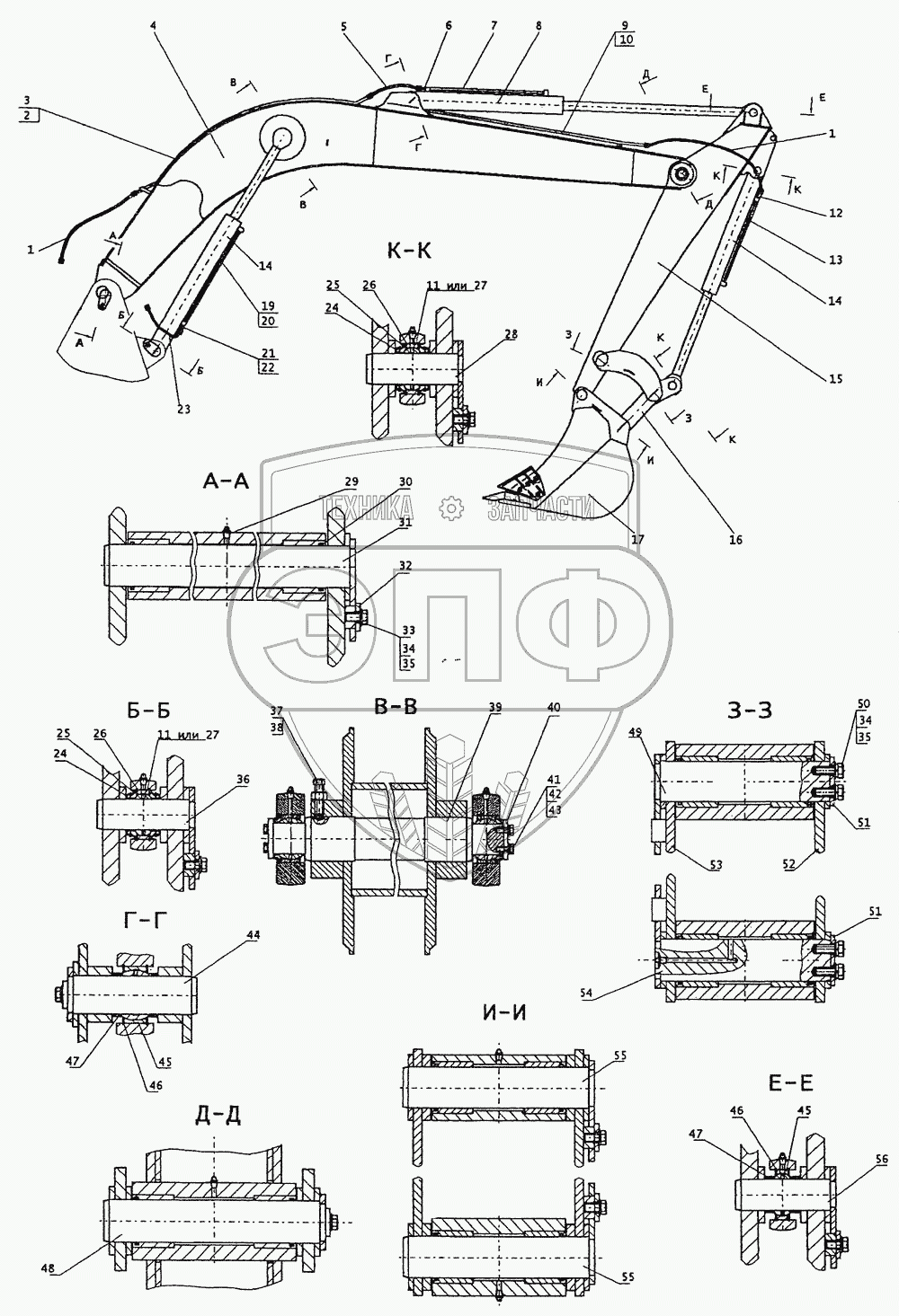 Каталог запасных частей к технике: ТВЭКС ЕТ-25. Рабочее оборудование обратной лопаты