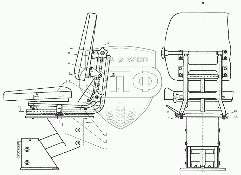 Каталог запасных частей к технике: ТВЭКС ЕТ-25. Сиденье машиниста