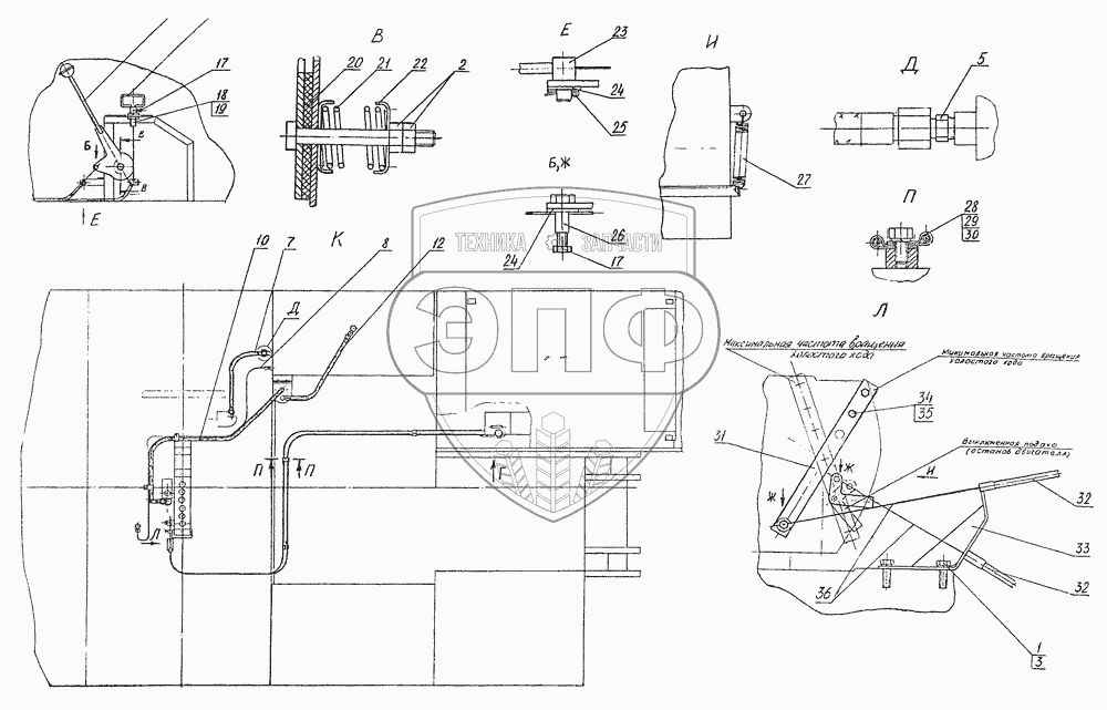 Каталог запасных частей к технике: ТВЭКС ЕТ-25. Топливопроводы и управление подачей топлива
