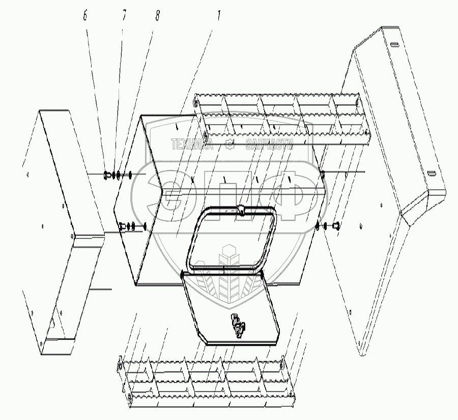 Каталог запасных частей к технике: ТВЭКС ТХ-210. 206150000000 15 Установка инструментального ящика справа