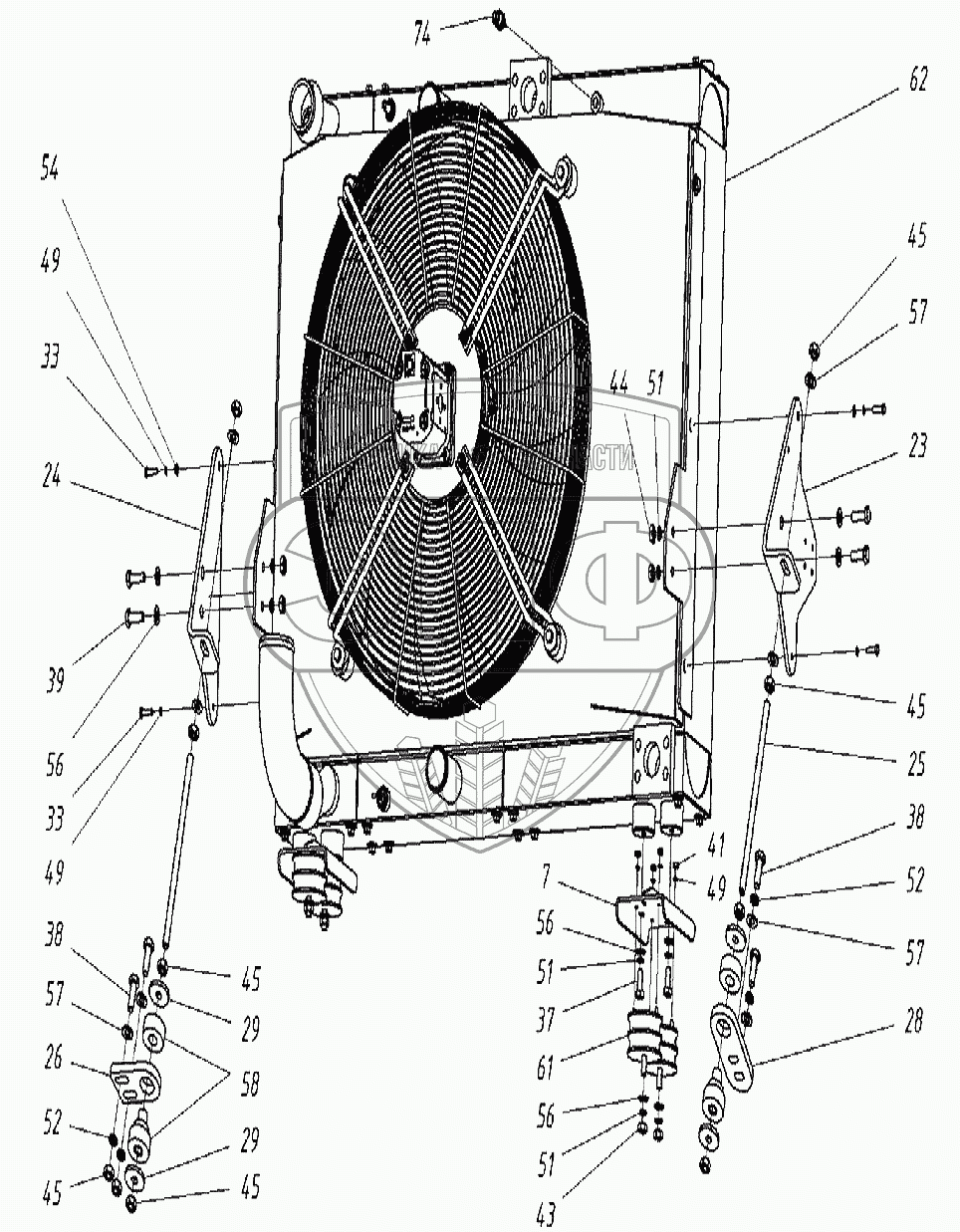 Каталог запасных частей к технике: ТВЭКС ТХ-210. 212120002000 00 Радиатор с кронштейнами