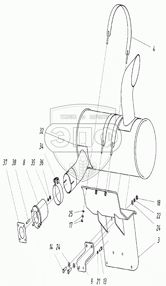 Каталог запасных частей к технике: ТВЭКС ТХ-210. 212120004000 00 Установка глушителя