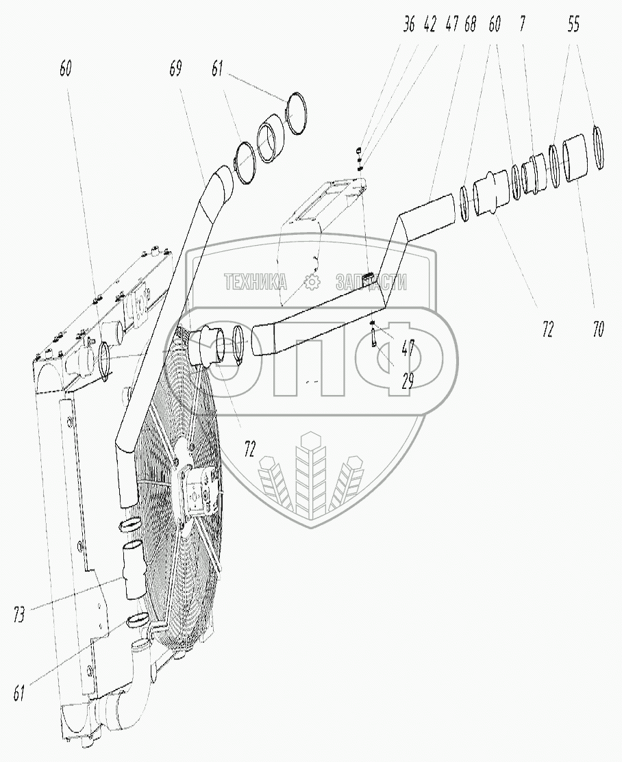 Каталог запасных частей к технике: ТВЭКС ТХ-210. Патрубки интеркулера