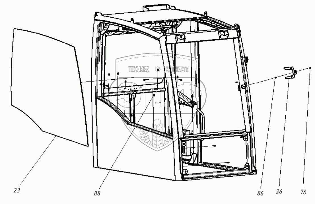 Каталог запасных частей к технике: ТВЭКС ТХ-210. 202020100000 00 Кабина в сборе