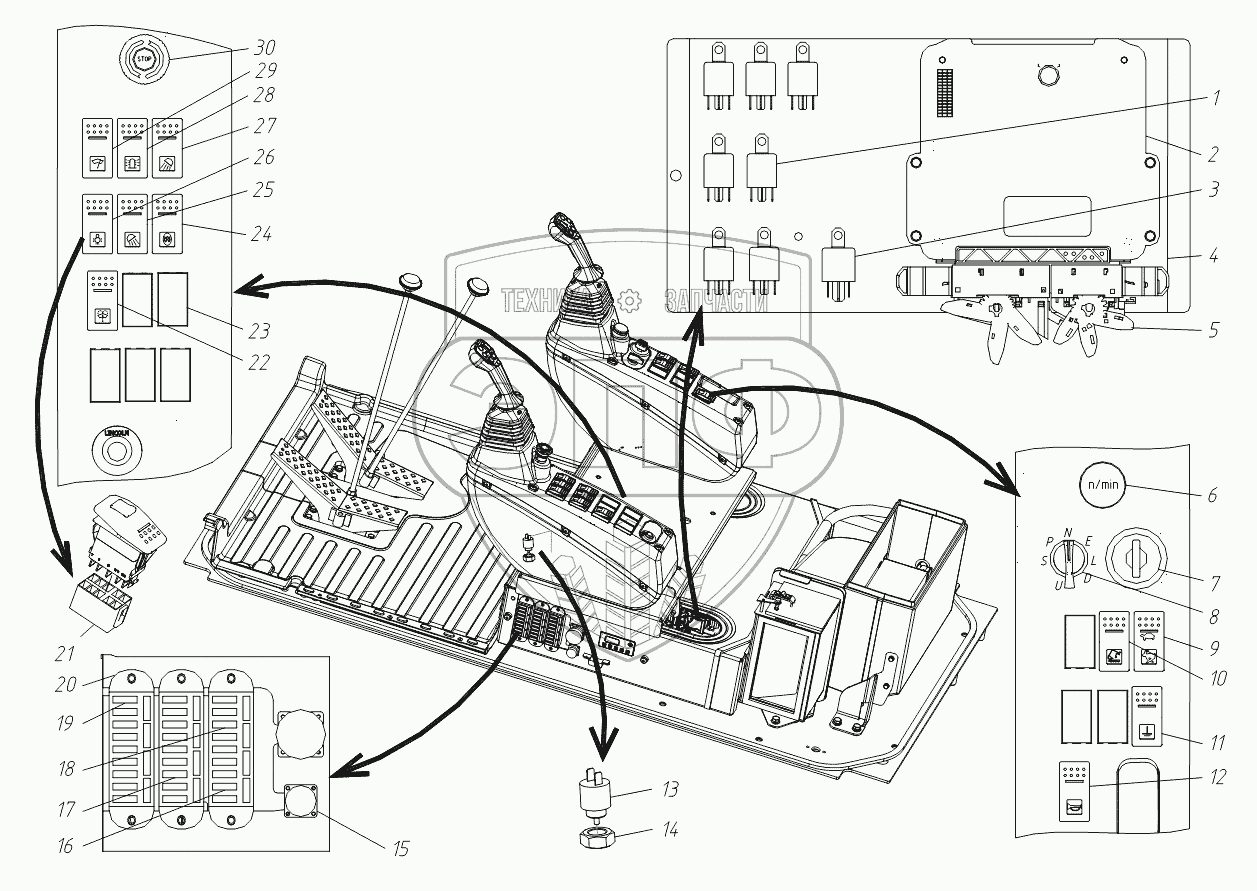 Каталог запасных частей к технике: ТВЭКС ТХ-210. 202030600000 01 Электроуправление в кабине