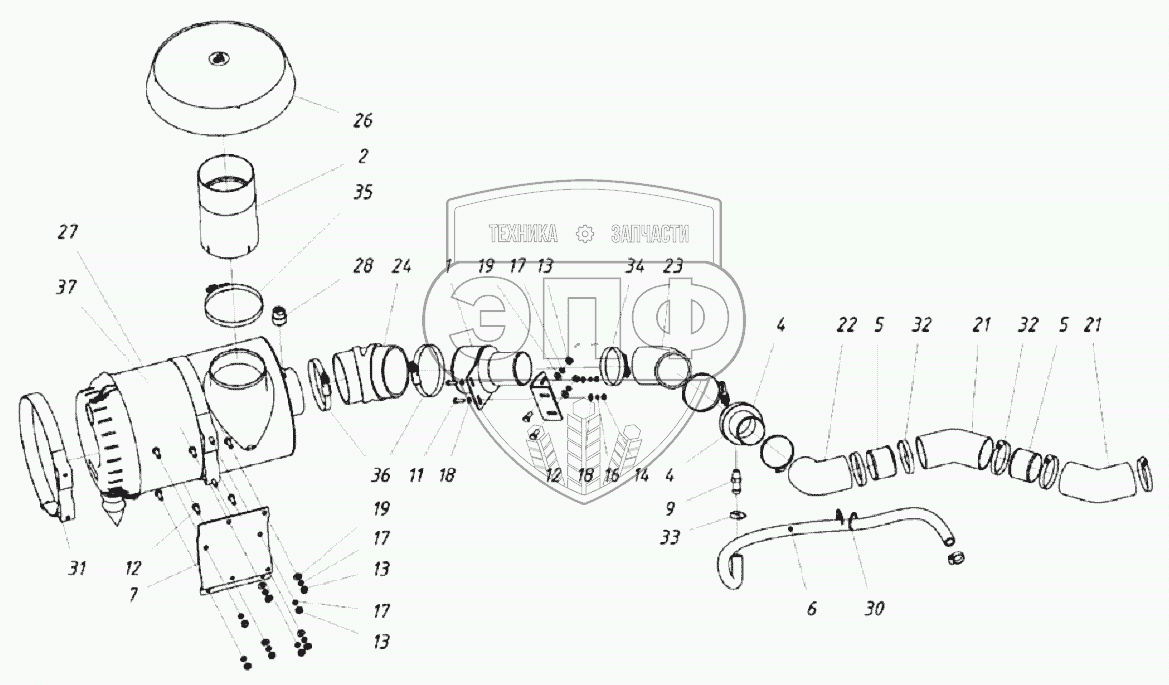 Каталог запасных частей к технике: ТВЭКС ТХ-210. 202120003000 00 Установка воздухоочистителя