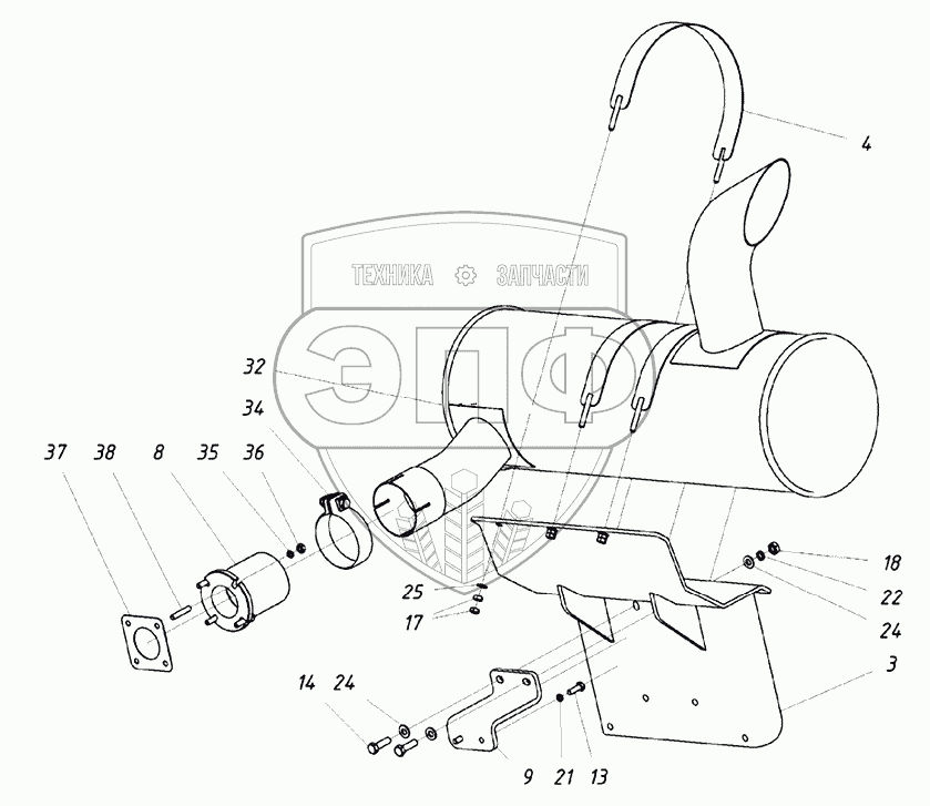 Каталог запасных частей к технике: ТВЭКС ТХ-210. 212120004000 00 Установка глушителя