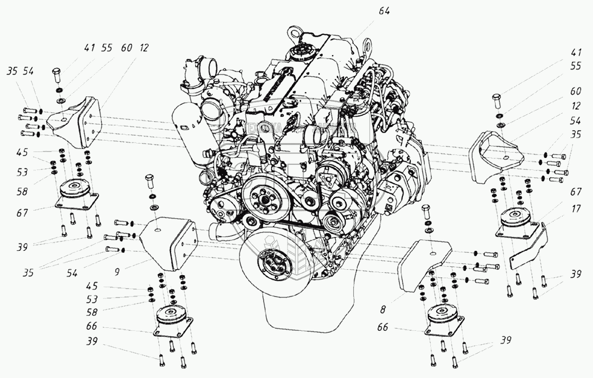 Каталог запасных частей к технике: ТВЭКС ТХ-210. Двигатель с опорами