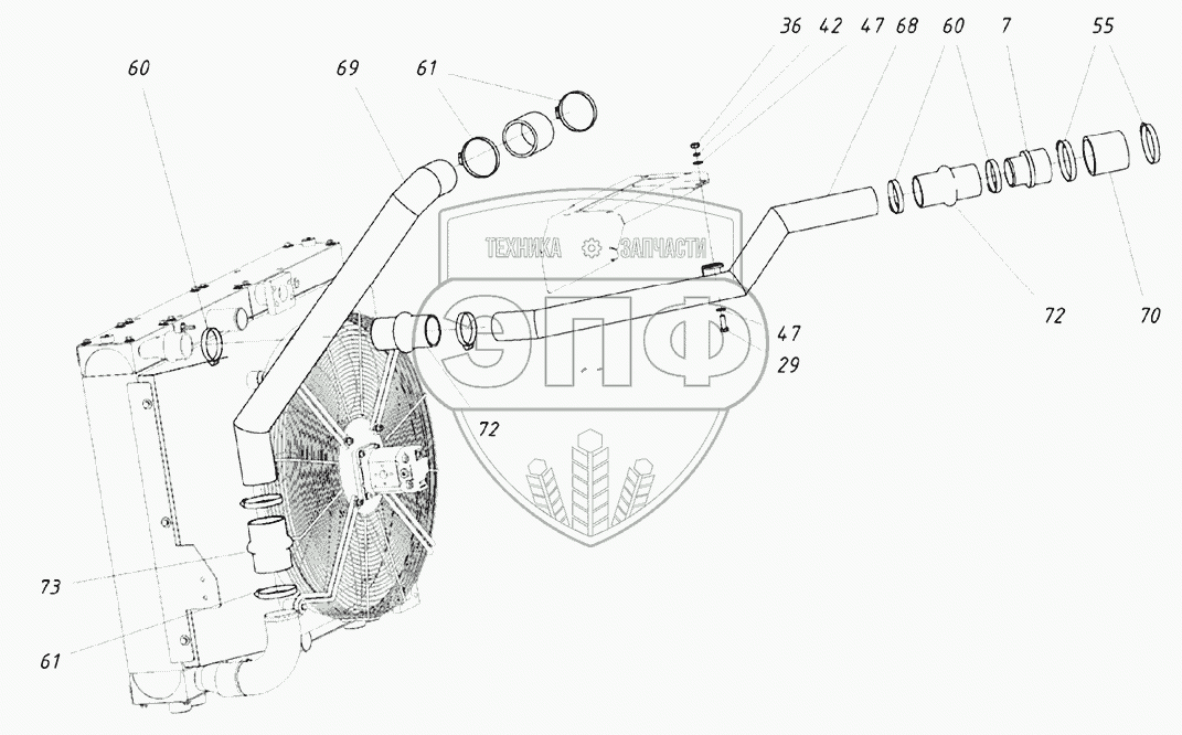 Каталог запасных частей к технике: ТВЭКС ТХ-210. Патрубки интеркулера