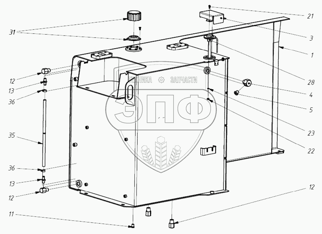 Каталог запасных частей к технике: ТВЭКС ТХ-220. 202040100000 00 Бак топливный