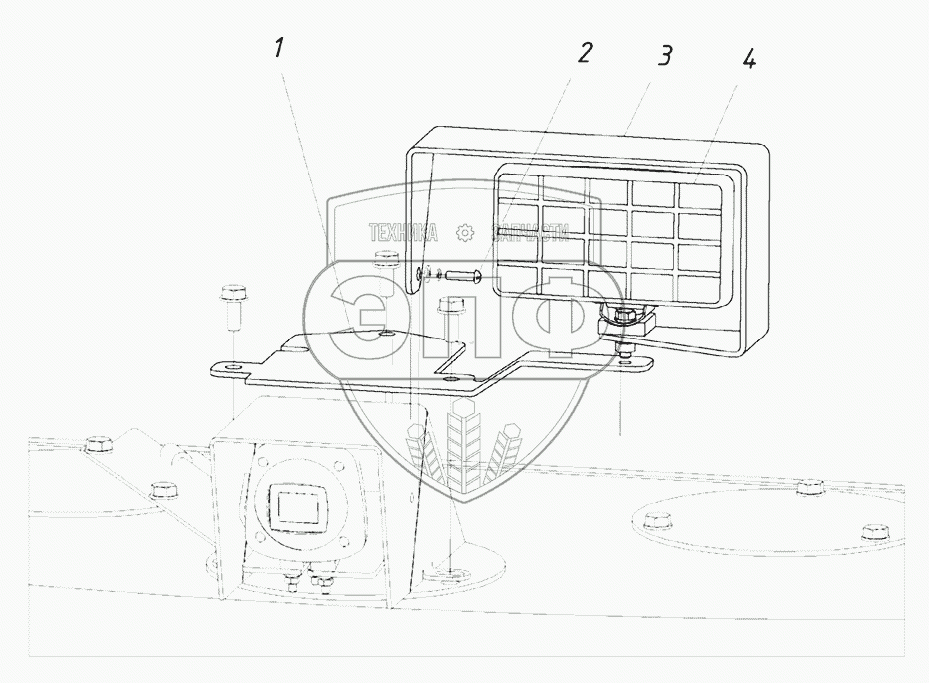 Каталог запасных частей к технике: ТВЭКС ТХ-220. 206090000000 09 Установка фары на противовес