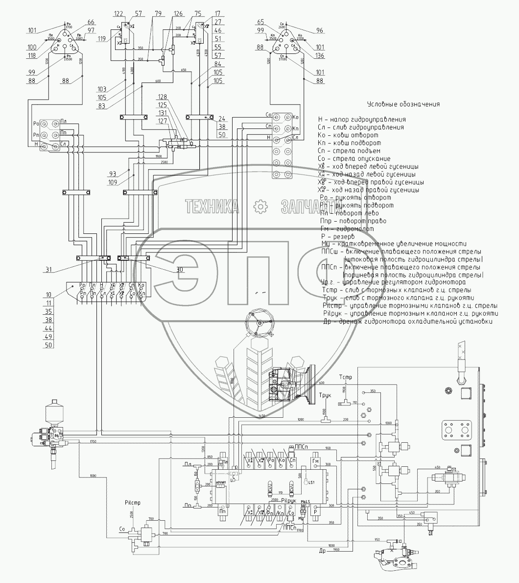 Каталог запасных частей к технике: ТВЭКС ТХ-220. 212030500000 00 Гидроуправление экскаватора