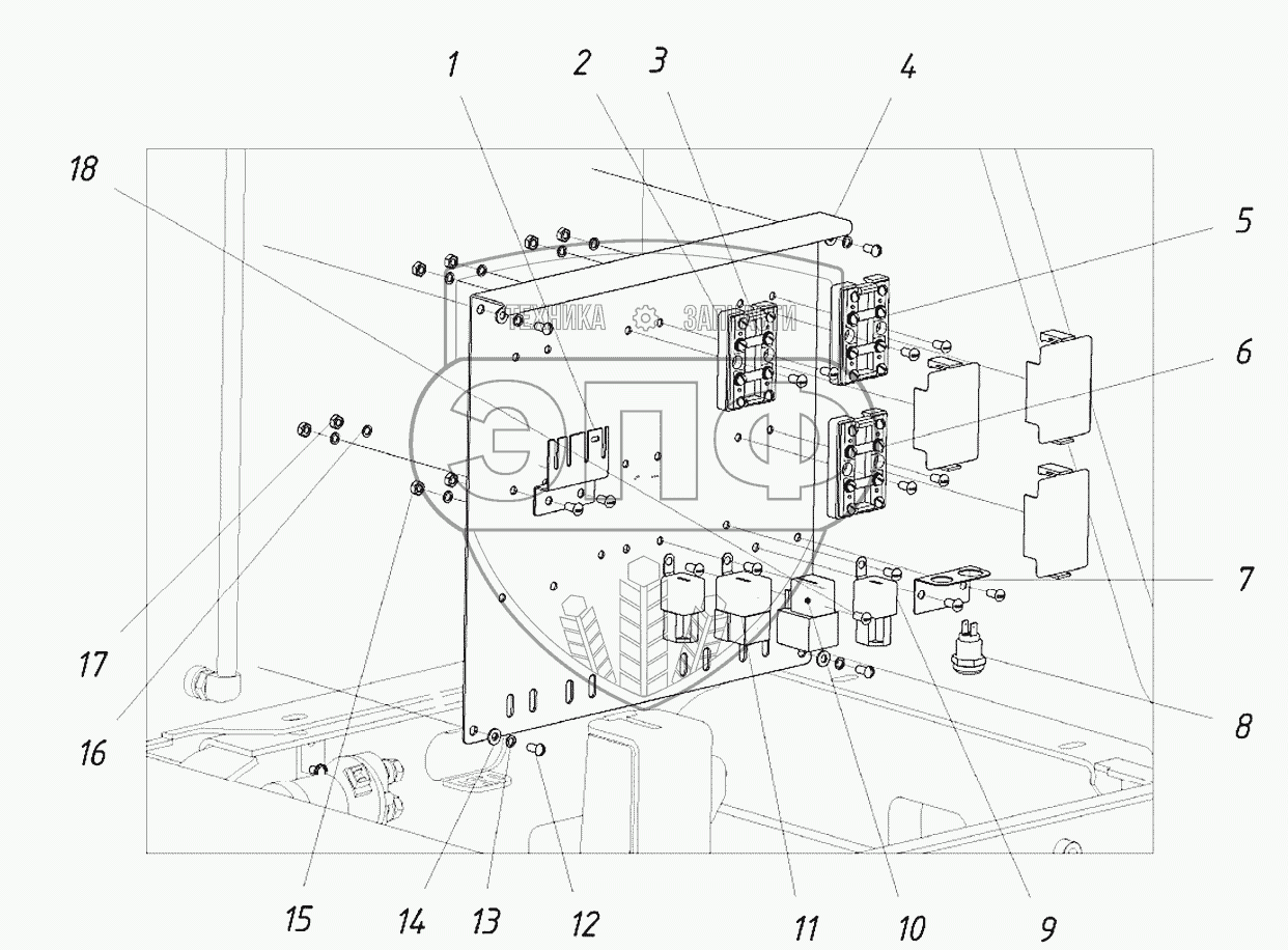 Каталог запасных частей к технике: ТВЭКС ТХ-220. Кронштейн реле на бак