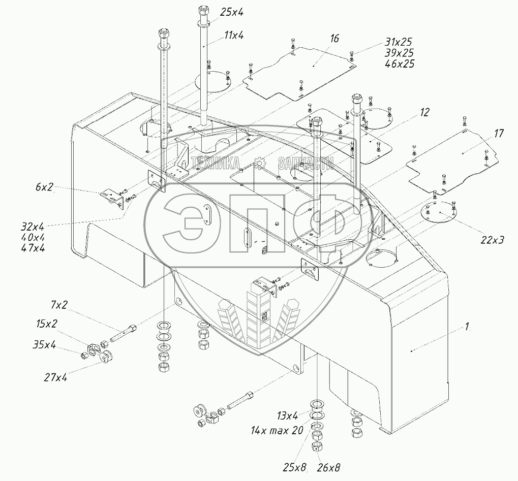Каталог запасных частей к технике: ТВЭКС ТХ-270 / 300. 272050000000 04 Установка противовеса