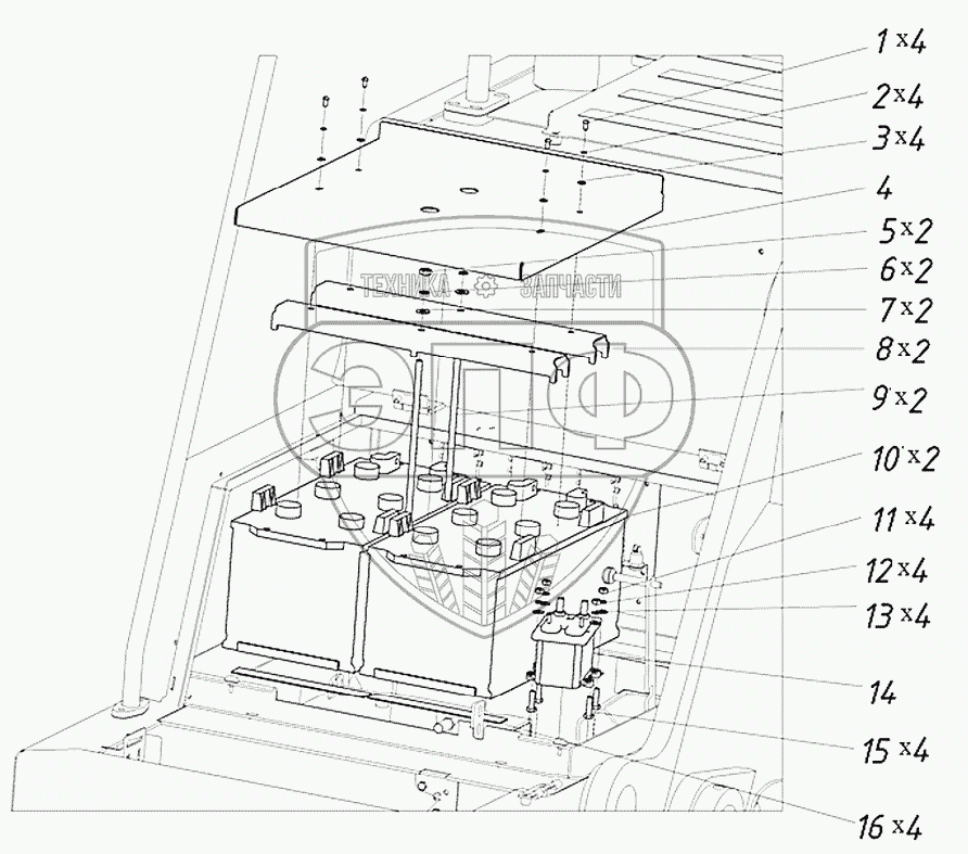 Каталог запасных частей к технике: ТВЭКС ТХ-270 / 300. Установка АКБ