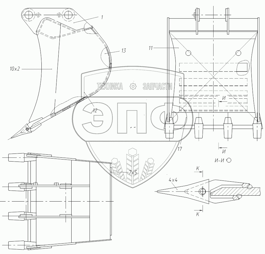 Каталог запасных частей к технике: ТВЭКС TVEX-140W. 312002805100 10 Ковш обратной лопаты