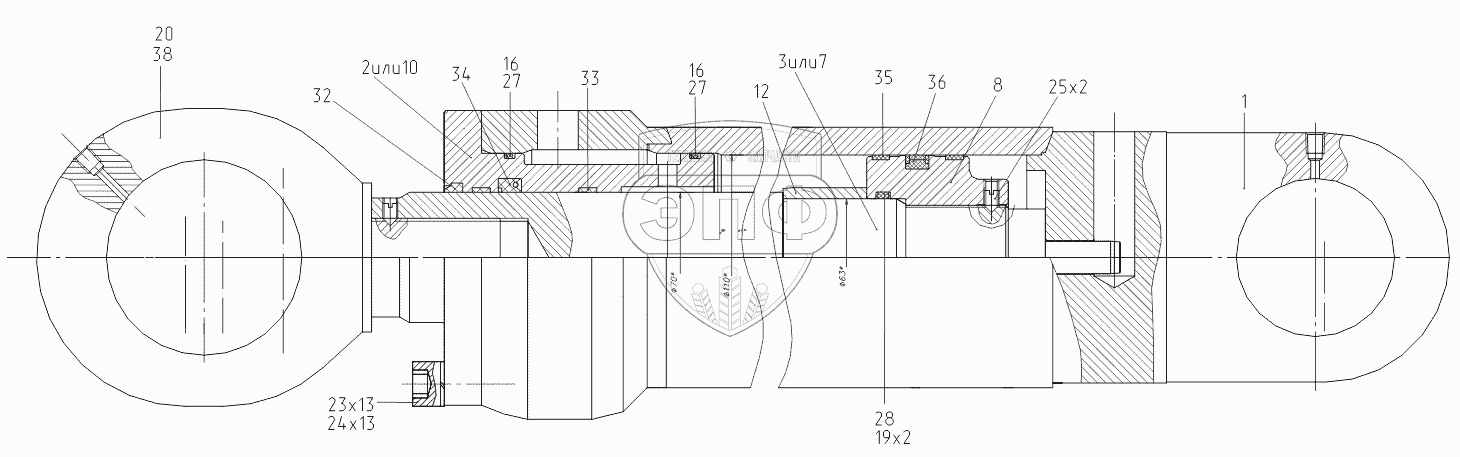 Каталог запасных частей к технике: ТВЭКС TVEX-140W. 313002395000 16 Гидроцилиндр (110х70х1100)