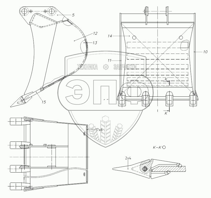 Каталог запасных частей к технике: ТВЭКС TVEX-140W. 314032321100 10 Ковш обратной лопаты