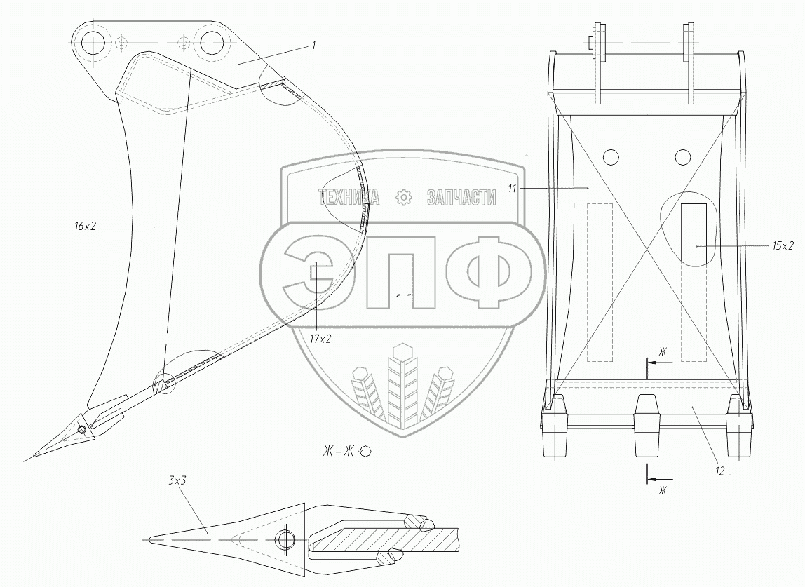 Каталог запасных частей к технике: ТВЭКС TVEX-140W. 314032321300 10 Ковш обратной лопаты