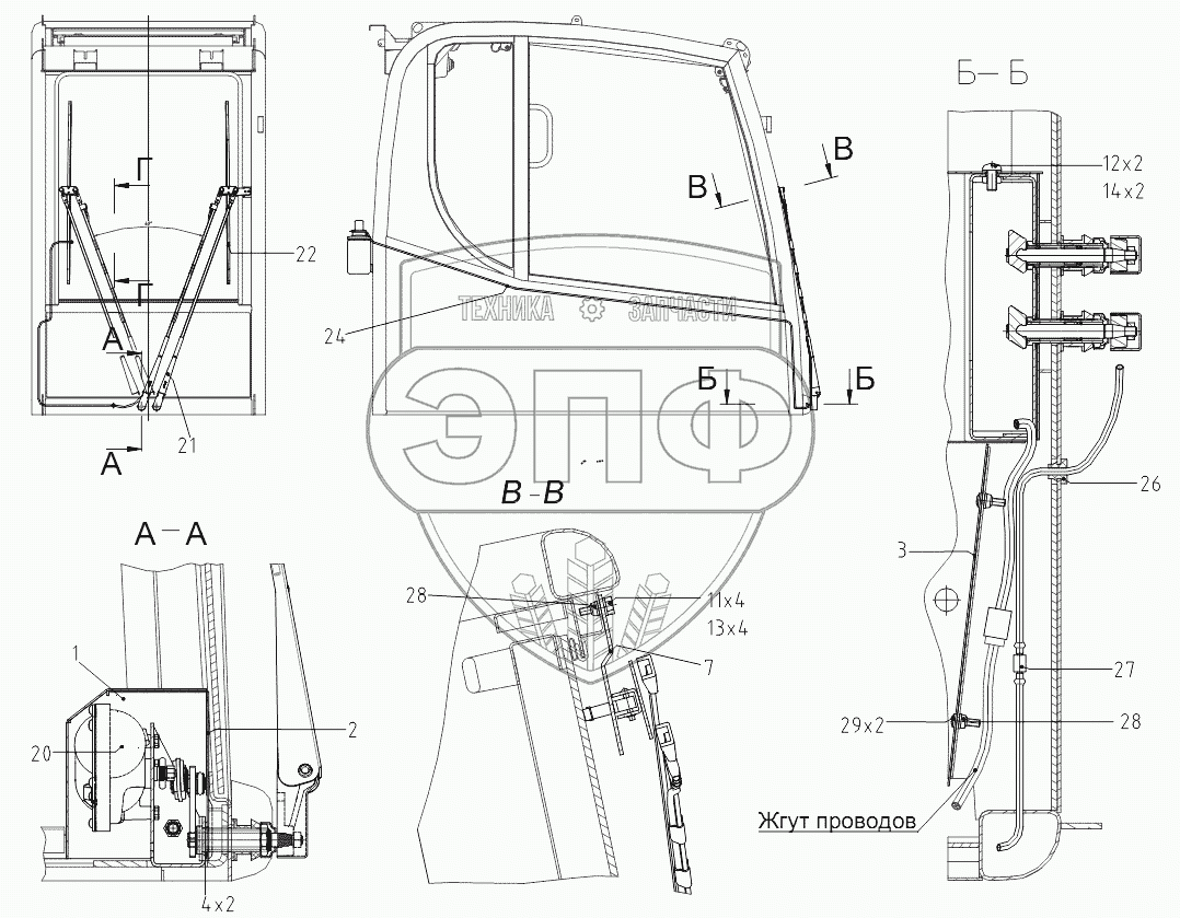 Каталог запасных частей к технике: ТВЭКС TVEX-180W. 001426108000 00 Установка стеклоочистителя