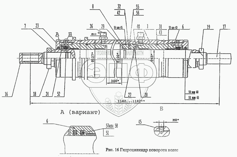 Каталог запасных частей к технике: ТВЭКС ВП-05. Гидроцилиндр поворота колес