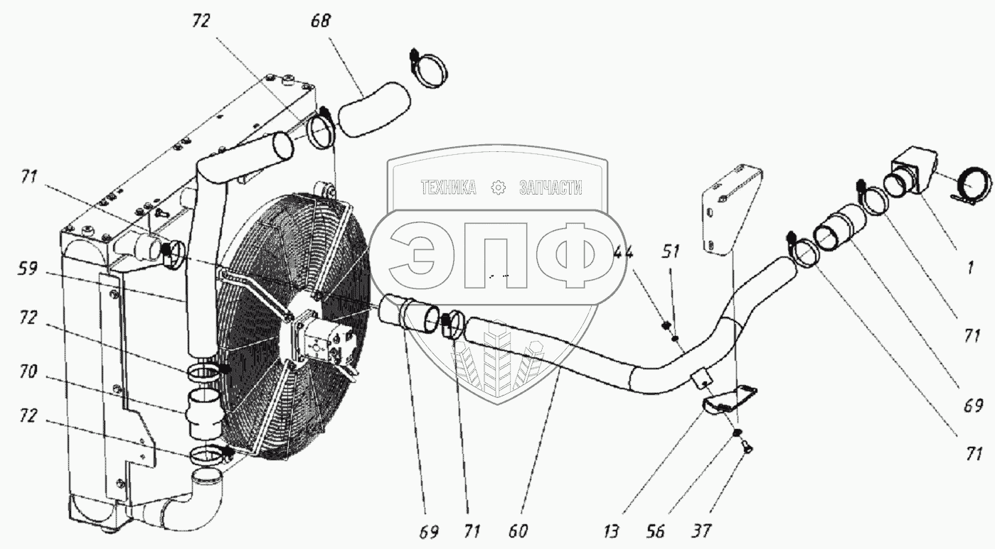 Каталог запасных частей к технике: ТВЭКС WХ-200. Патрубки интеркулера