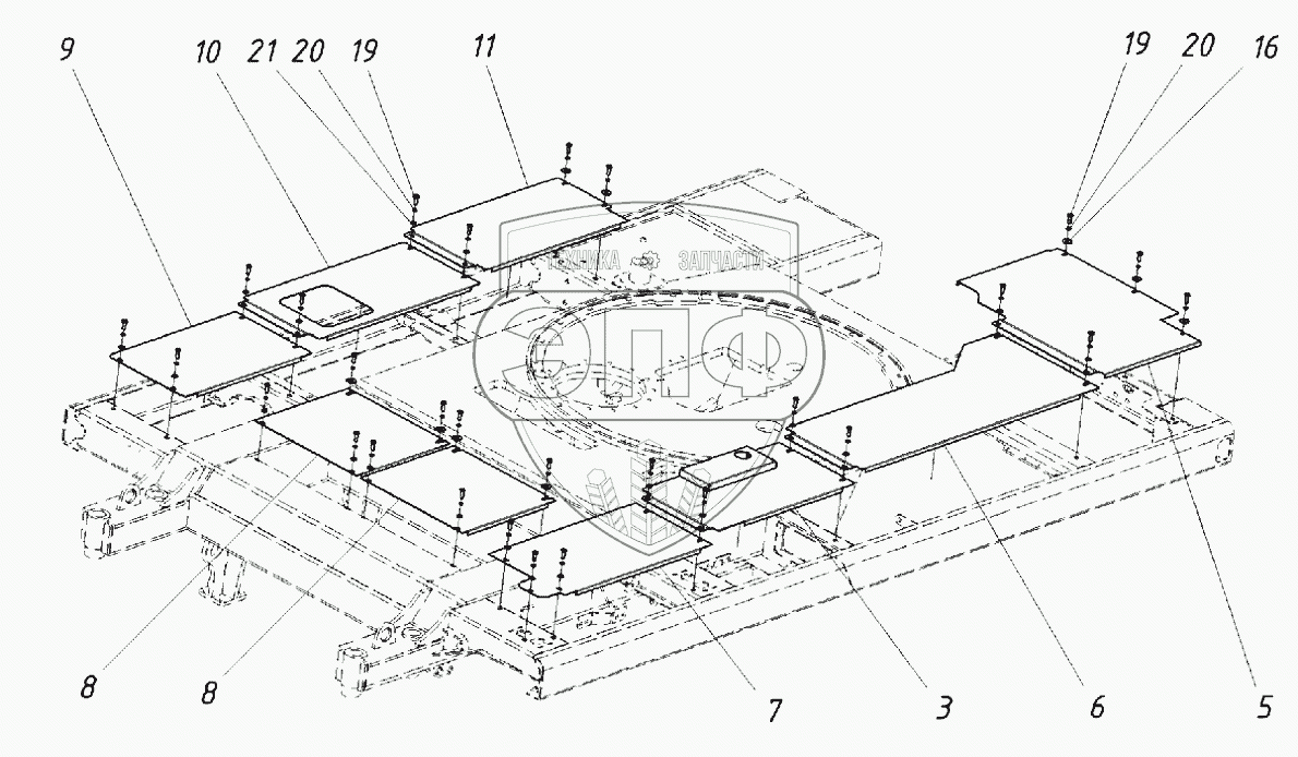 Каталог запасных частей к технике: ТВЭКС WХ-200 (2017). 202130000000 00 Установка поддонов