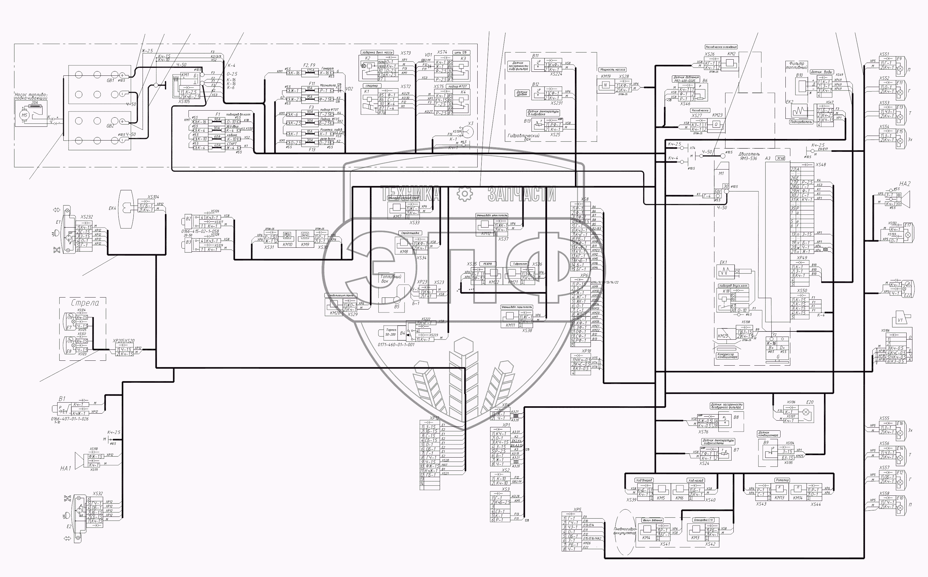 Каталог запасных частей к технике: ТВЭКС WХ-200 (2017). Жгуты поворотной платформы
