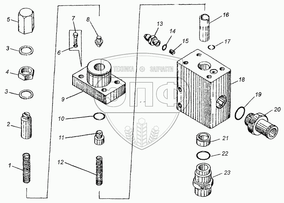 Каталог запасных частей к технике: Угличмаш КС-3577. Клапан предохранительный У.067.00.000