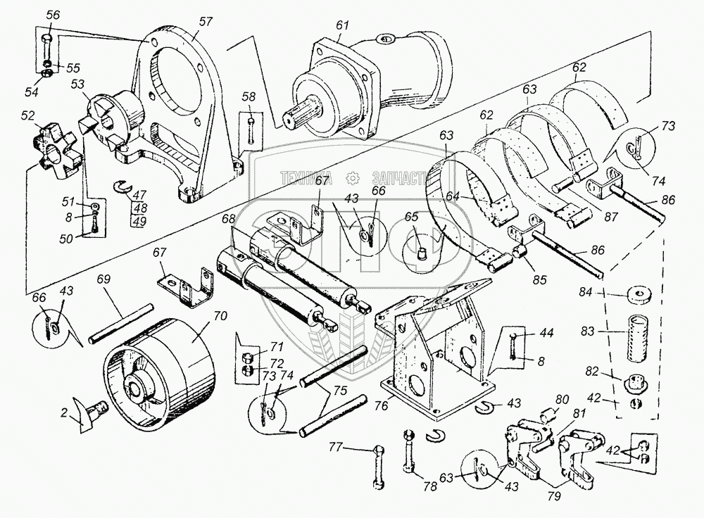 Каталог запасных частей к технике: Угличмаш КС-3577. Лебедка КС-3577.26.000-3