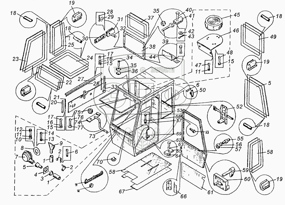 Каталог запасных частей к технике: Угличмаш КС-3577. Установка кабины КС-3577.52.000