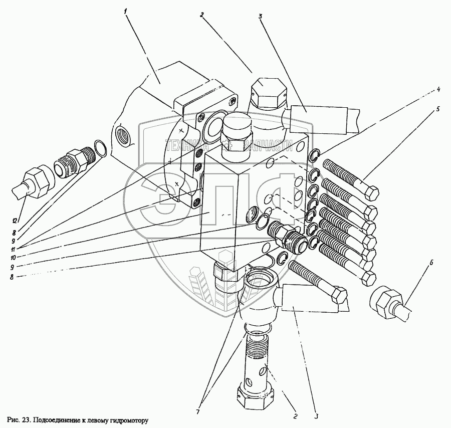 Каталог запасных частей к технике: УВЗ ПУМ-500. Подсоединение к левому гидромотору