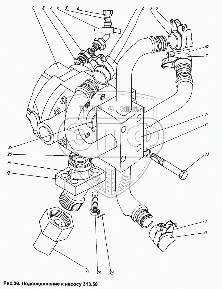 Каталог запасных частей к технике: УВЗ ПУМ-500. Подсоединение к насосу 313.56