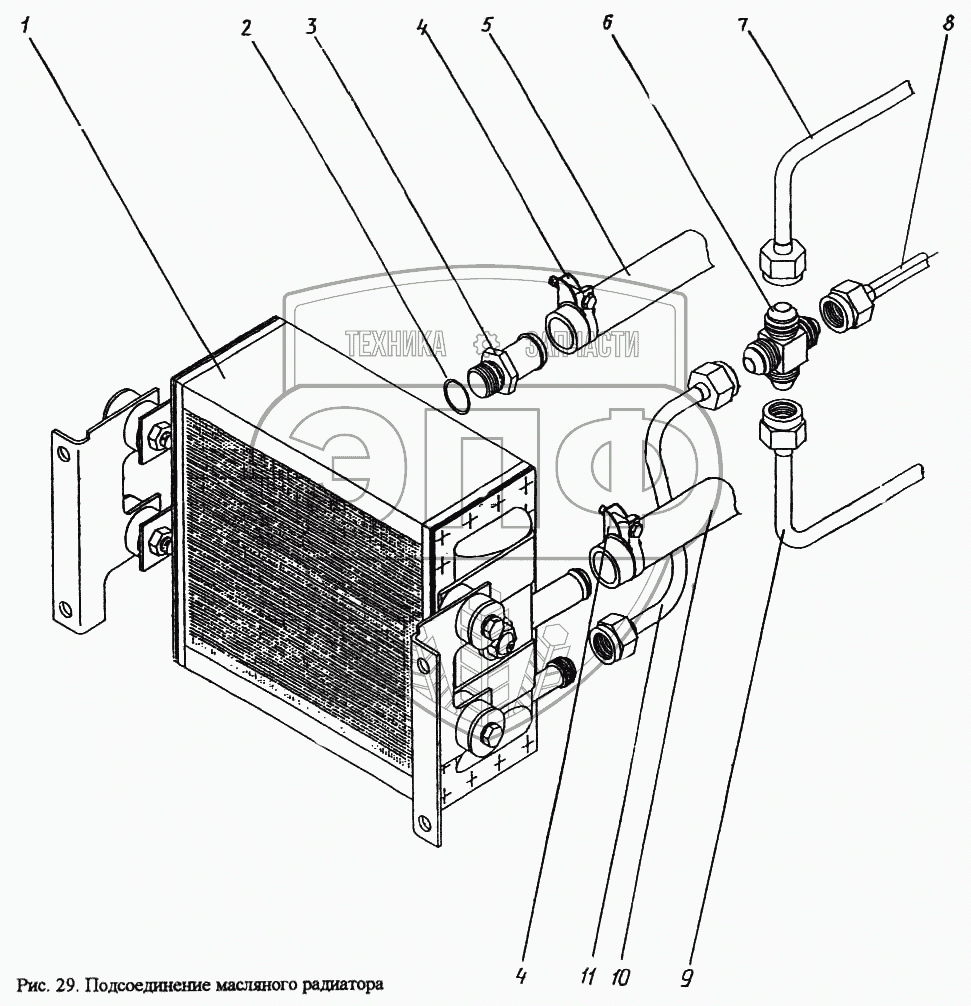 Каталог запасных частей к технике: УВЗ ПУМ-500. Подсоединение масляного радиатора