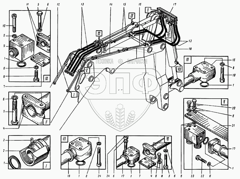 Каталог запасных частей к технике: ВЭКС ЭО-5122. Трубопроводы рабочего оборудования обратная лопата